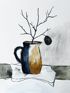 A series of still life paintings featuring bowls, jugs, vases, and branches in abstract and minimalist styles. This project captures the essence of everyday objects with a focus on watercolor and abstract backgrounds.